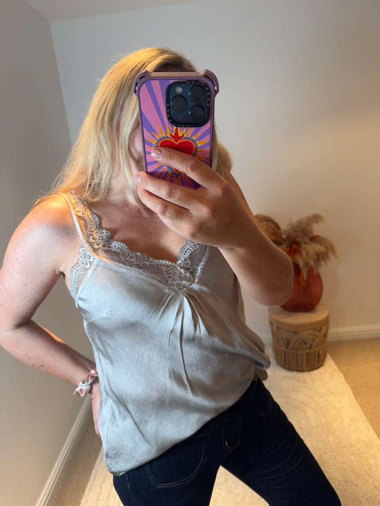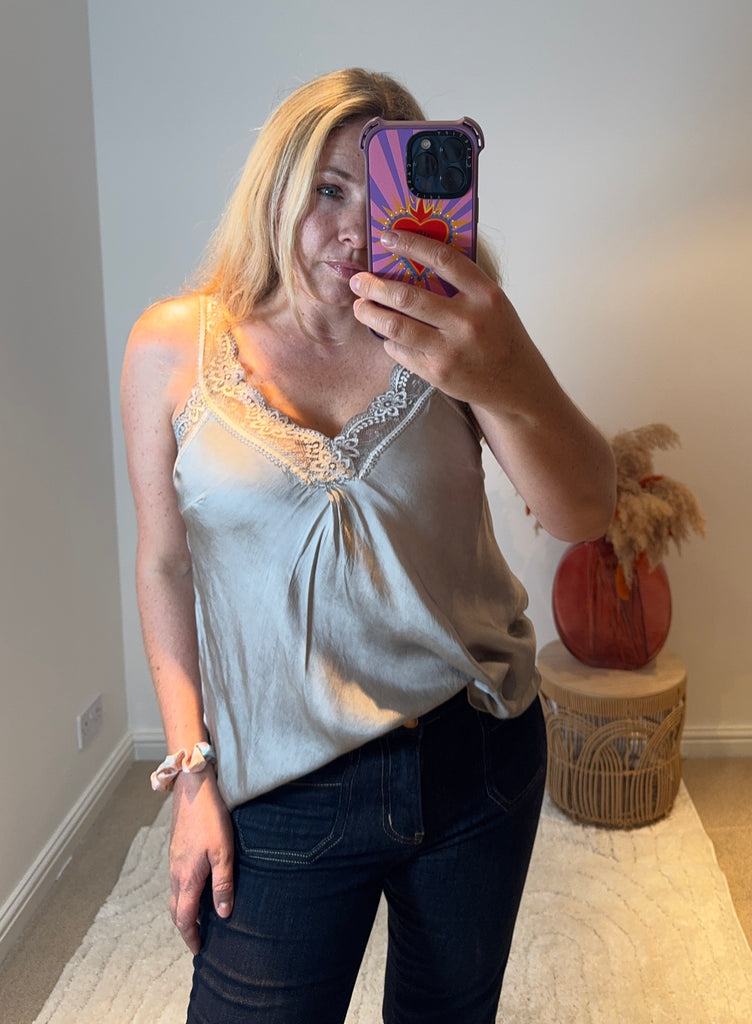 These silky lace camisoles are a perfect wardrobe basic - wear loose with skinny jeans or tuck into high waisted skirts or trousers. They also look great under chunky knitwear. They're cut beautifully and are so flattering.