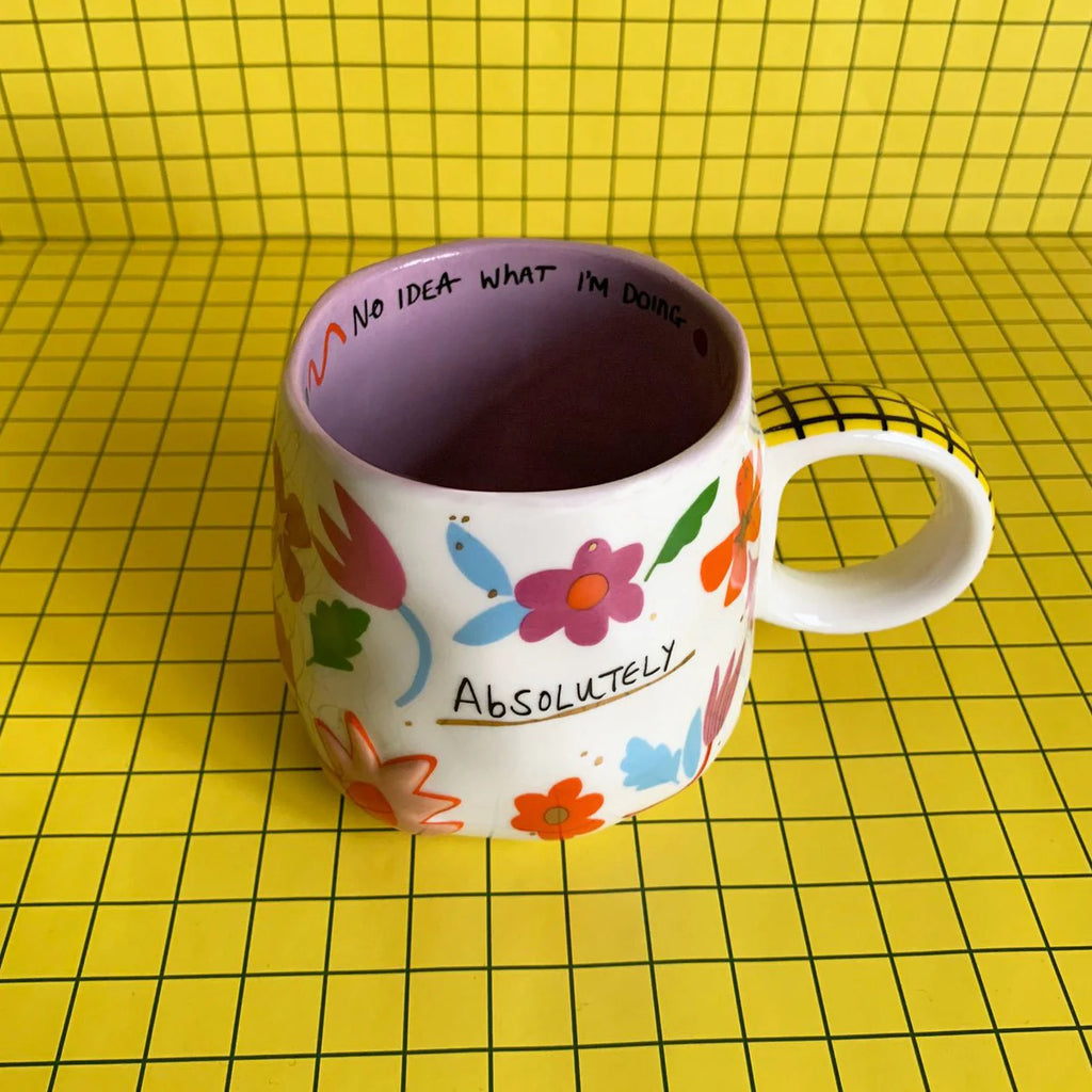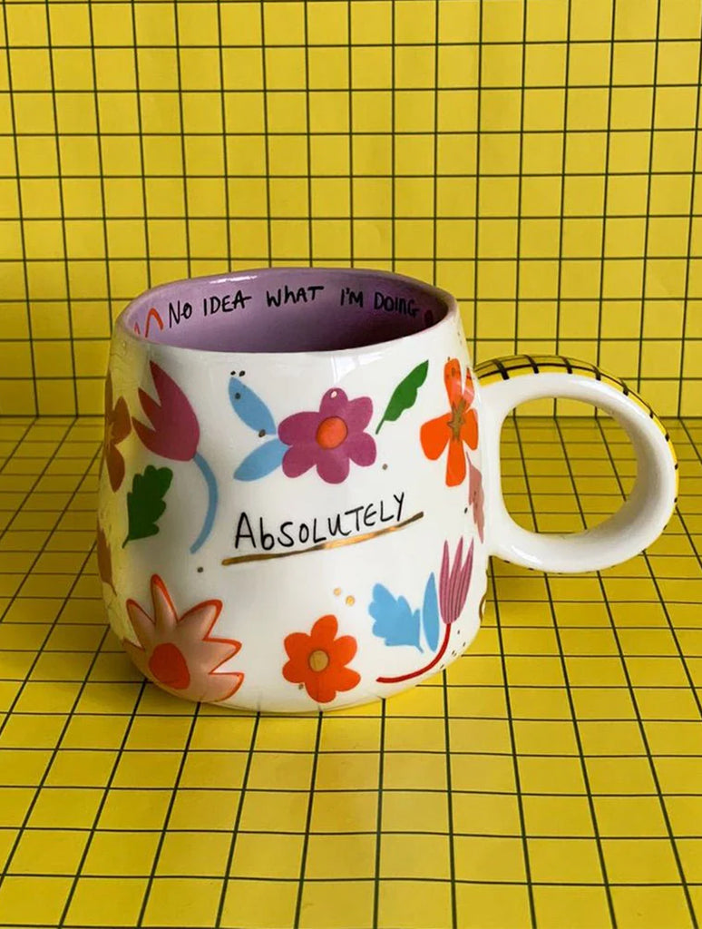 Features: Rise and shine caffeine-lovers! Meet the new mug in town, the “Absolutely” mug from Small Talk. This quirky little mug is crafted with a handmade battered feel - the wonkiness is all a part of the charm! Featuring an all-over floral print, this mug holds a secret message on the inside. This little note reads “Absolutely…no idea what I’m doing”… who else can relate?