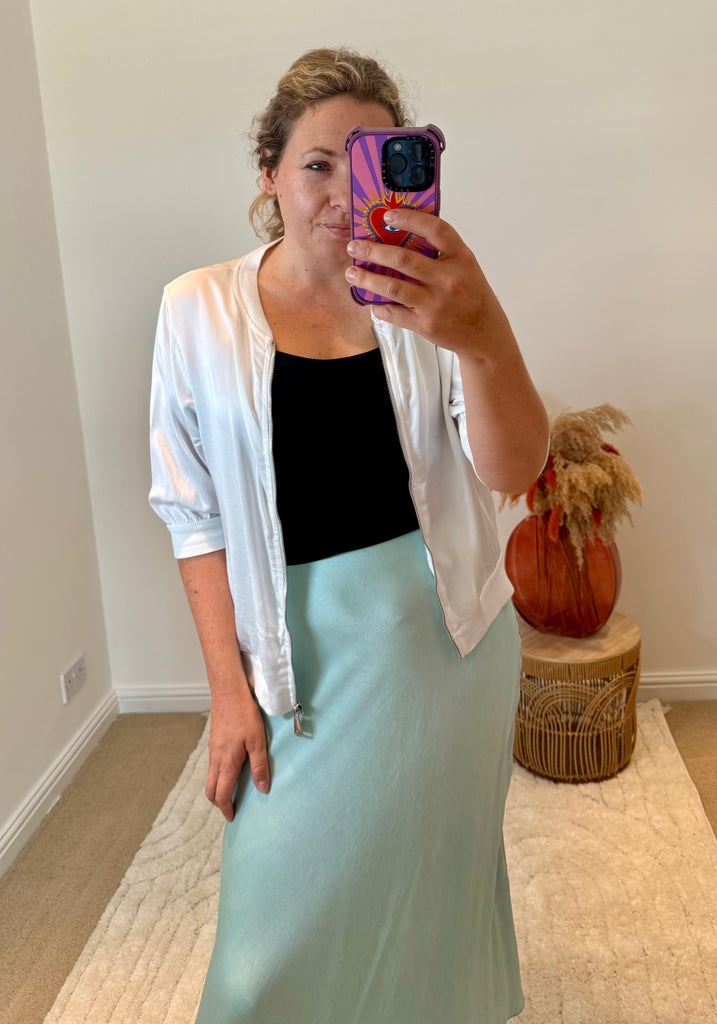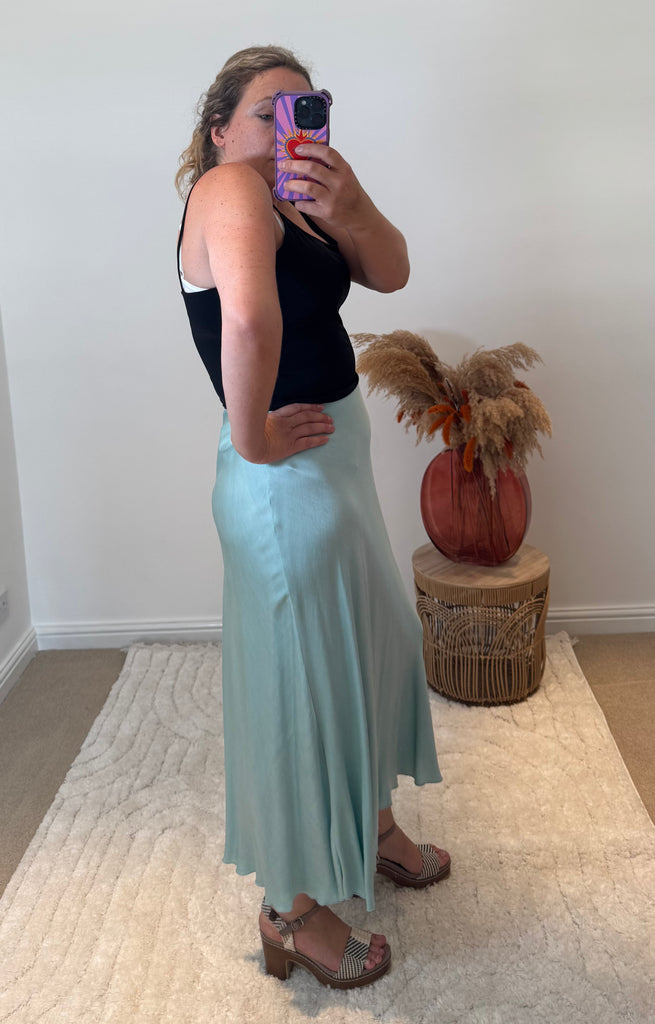Our bestselling Aurora satin skirts are a wardrobe essential this season - they look fabulous dressed up for the party season or down with a chunky knit and trainers - also stunning with sandals - a perfect all-rounder. They are cut on the bias and have the perfect weight to them to ensure they fall fluidly and move beautifully around the body.