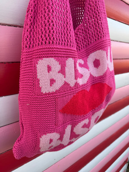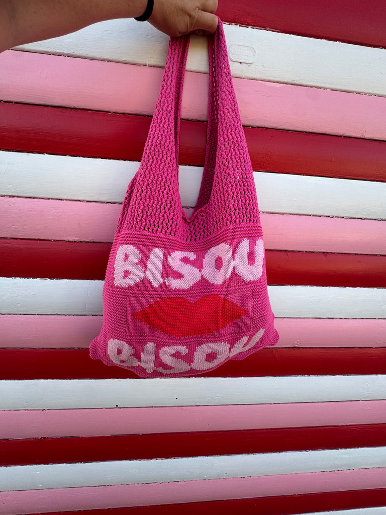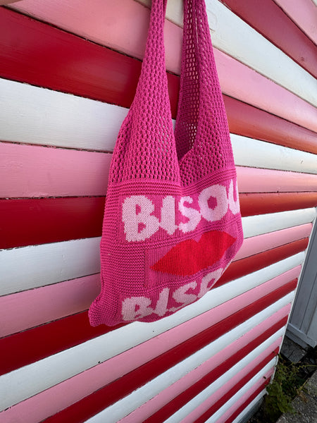 Perhaps the cutest bags we've ever seen!  These gorgeous slouch shoulder bags are made from a soft knit with 'Bisou Bisou' on the front.  The perfect size for every day - use as your main handbag or an extra tote when out shopping.  Now how to decide on the colour?!