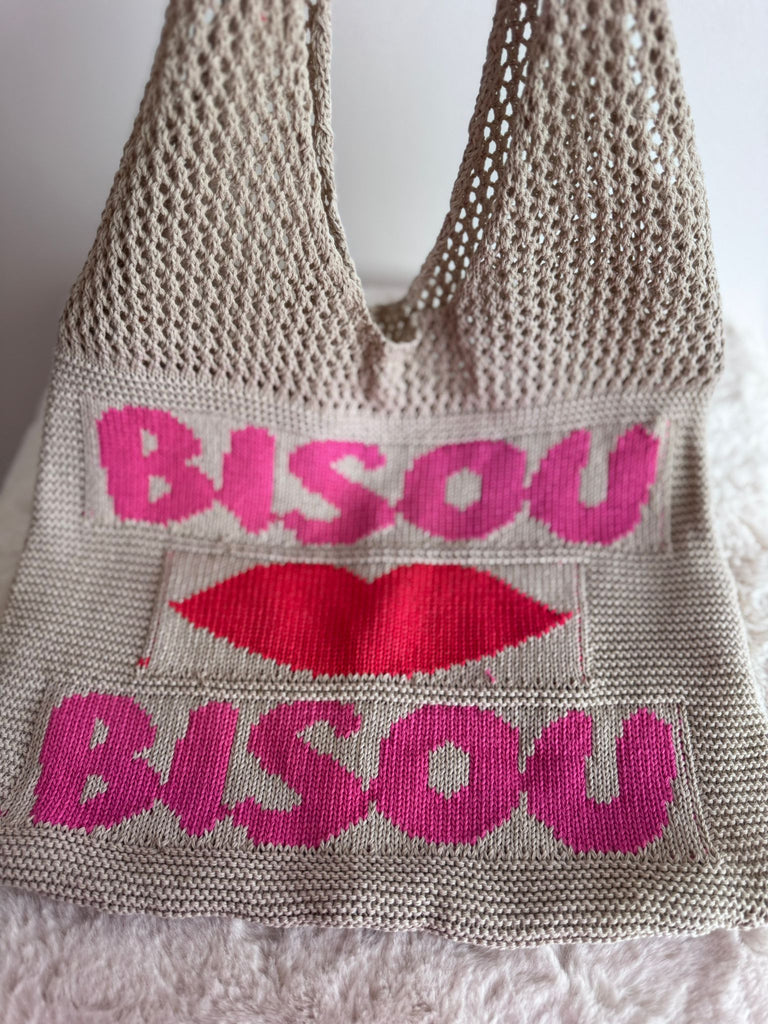 Perhaps the cutest bags we've ever seen! These gorgeous slouch shoulder bags are made from a soft knit with 'Bisou Bisou' on the front. The perfect size for every day - use as your main handbag or an extra tote when out shopping. Now how to decide on the colour?!