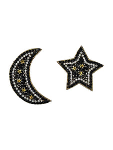 Indulge in celestial glamour with our handmade Black & Gold Mix Moon & Star Earrings. The sparkling design is perfect for partywear, adding a touch of elegance to any outfit. The celestial elements bring a magical touch to your fashion statement.