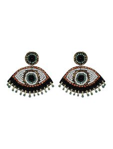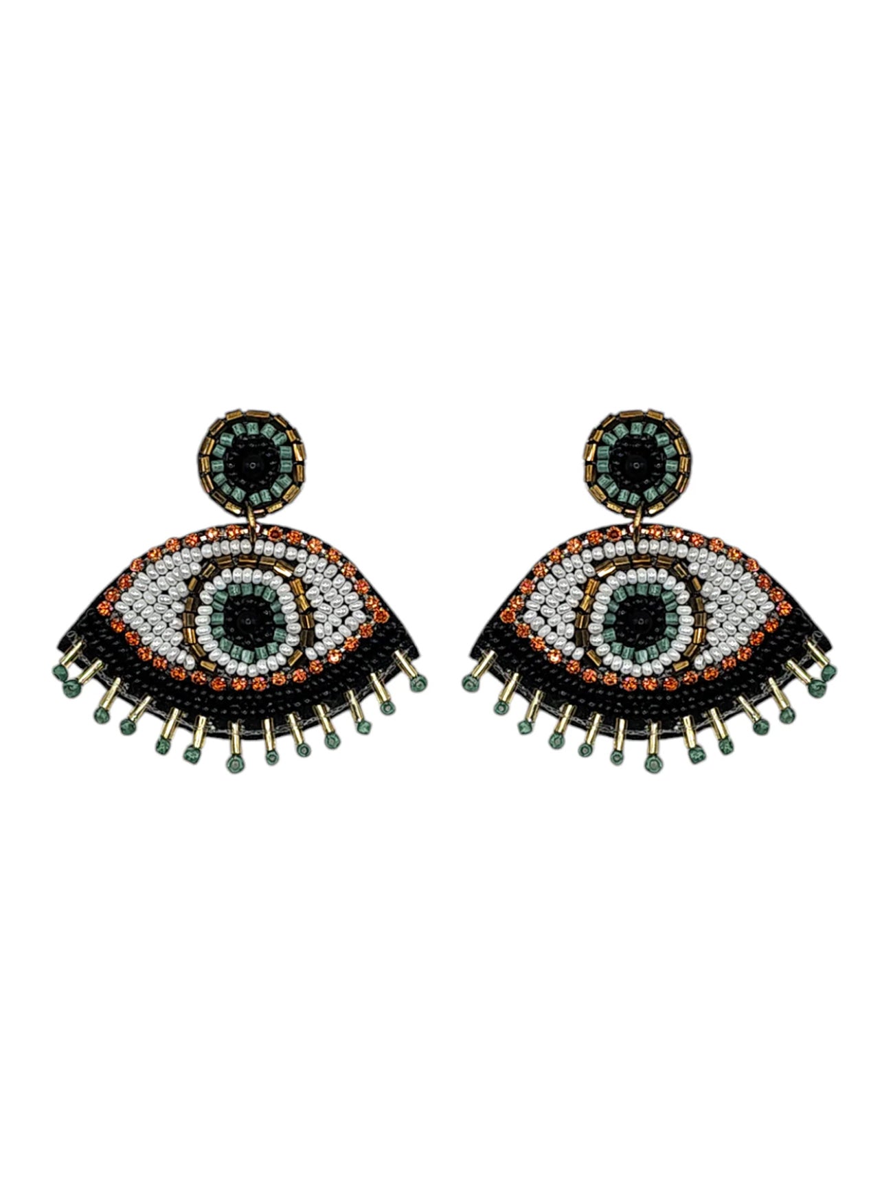 Make a bold and beautiful statement with these Bronze & Sage Beaded Eye Earrings. Featuring a graphic statement and abstract design, this unique pair of earrings are sure to be a showstopper. Make a fashion statement that won't go unnoticed.