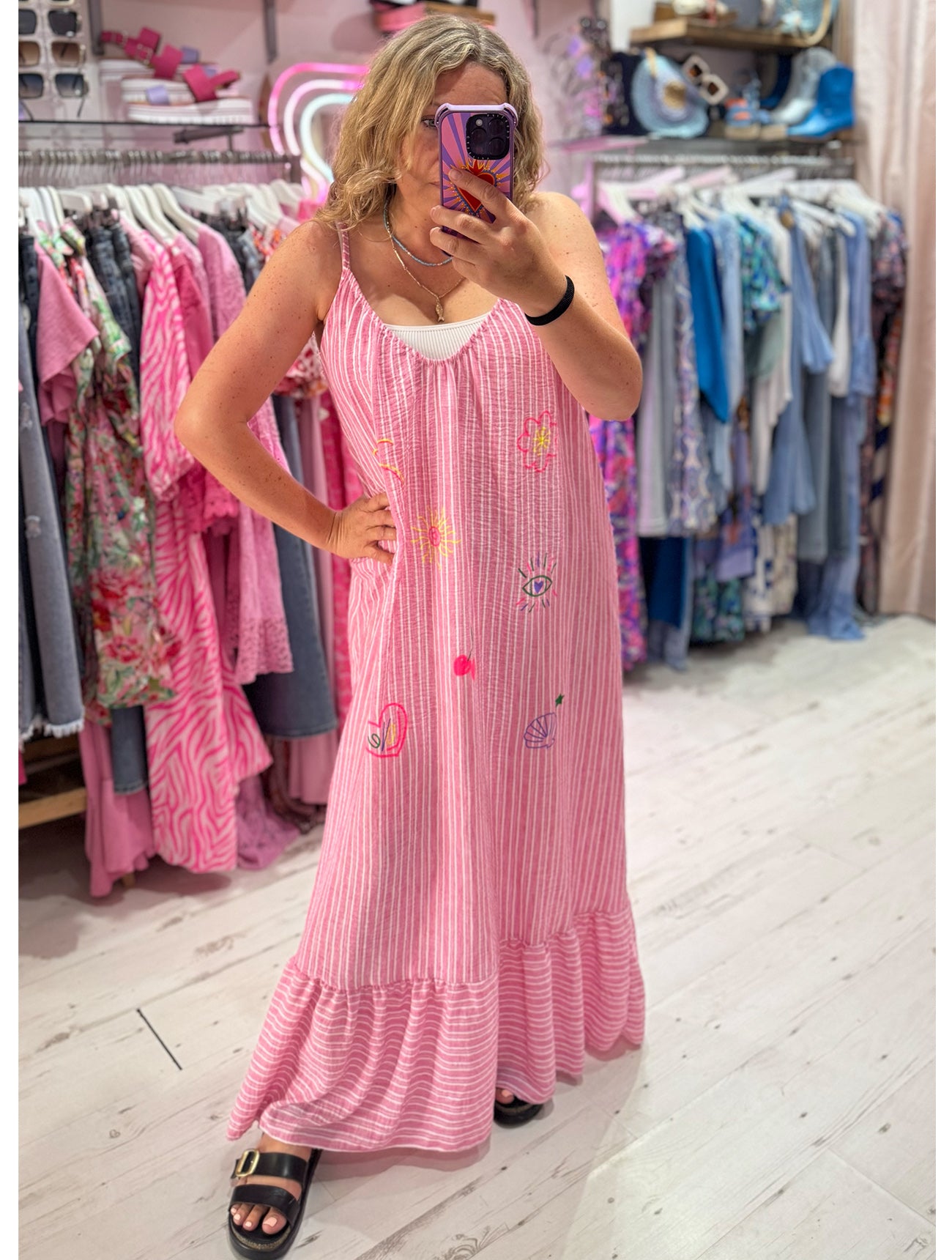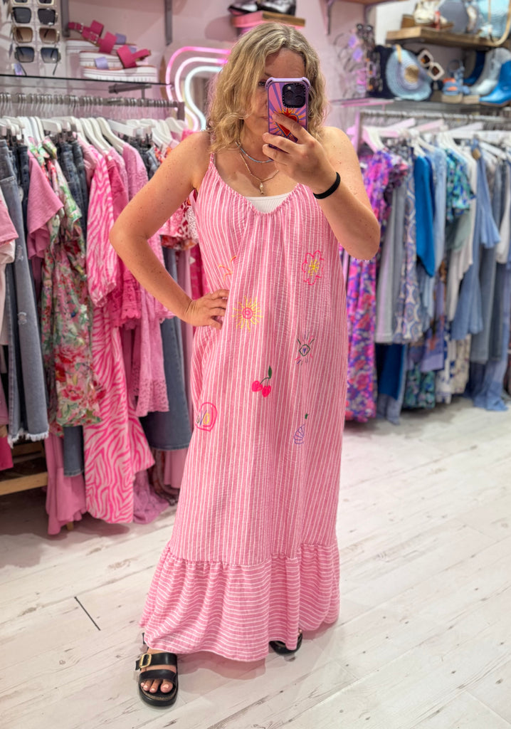 Callie Linen Mix Stripe Maxi Dress | Pink