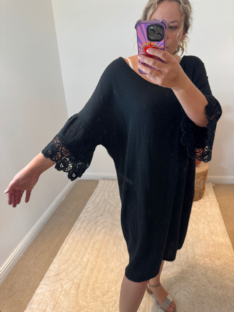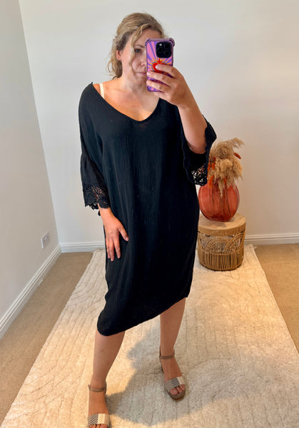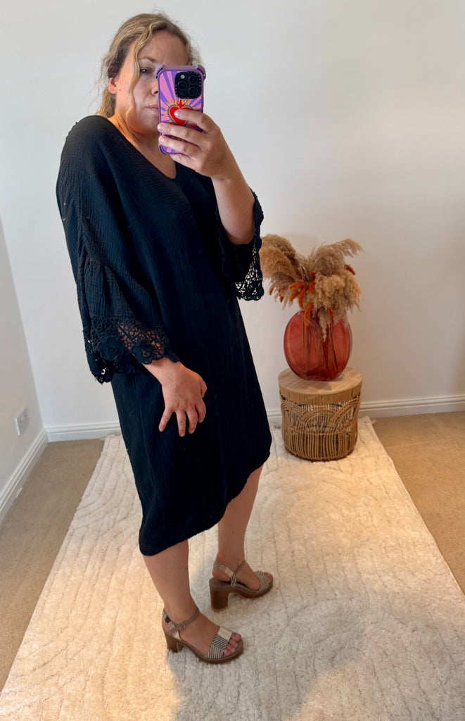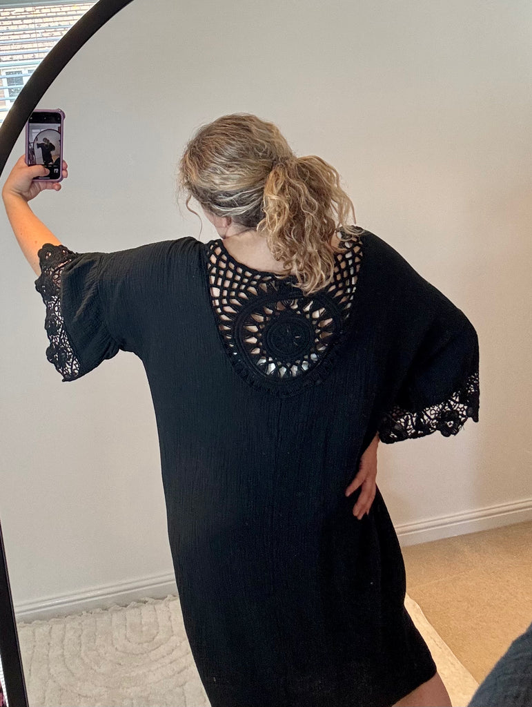 Cheesecloth Crochet Detail Dress/Cover Up | Black
