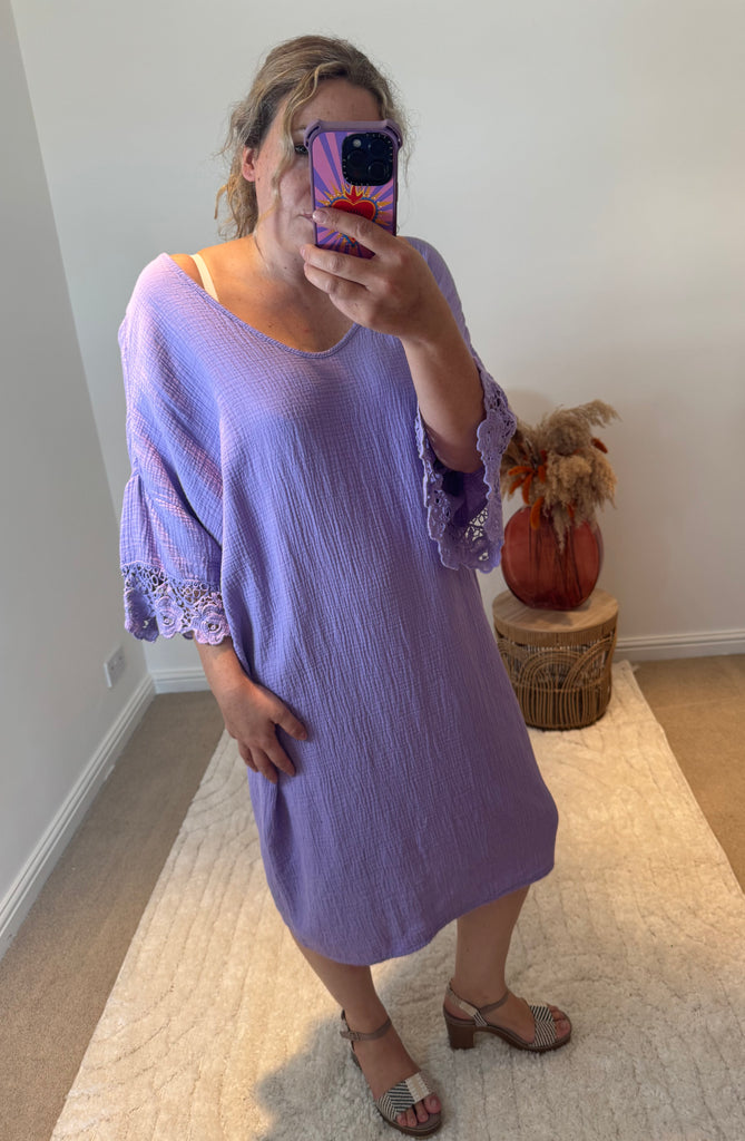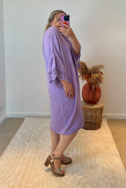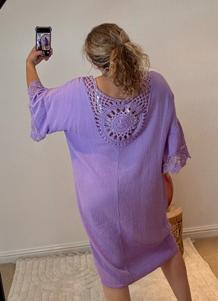 Cheesecloth Crochet Detail Dress/Cover Up | Lilac