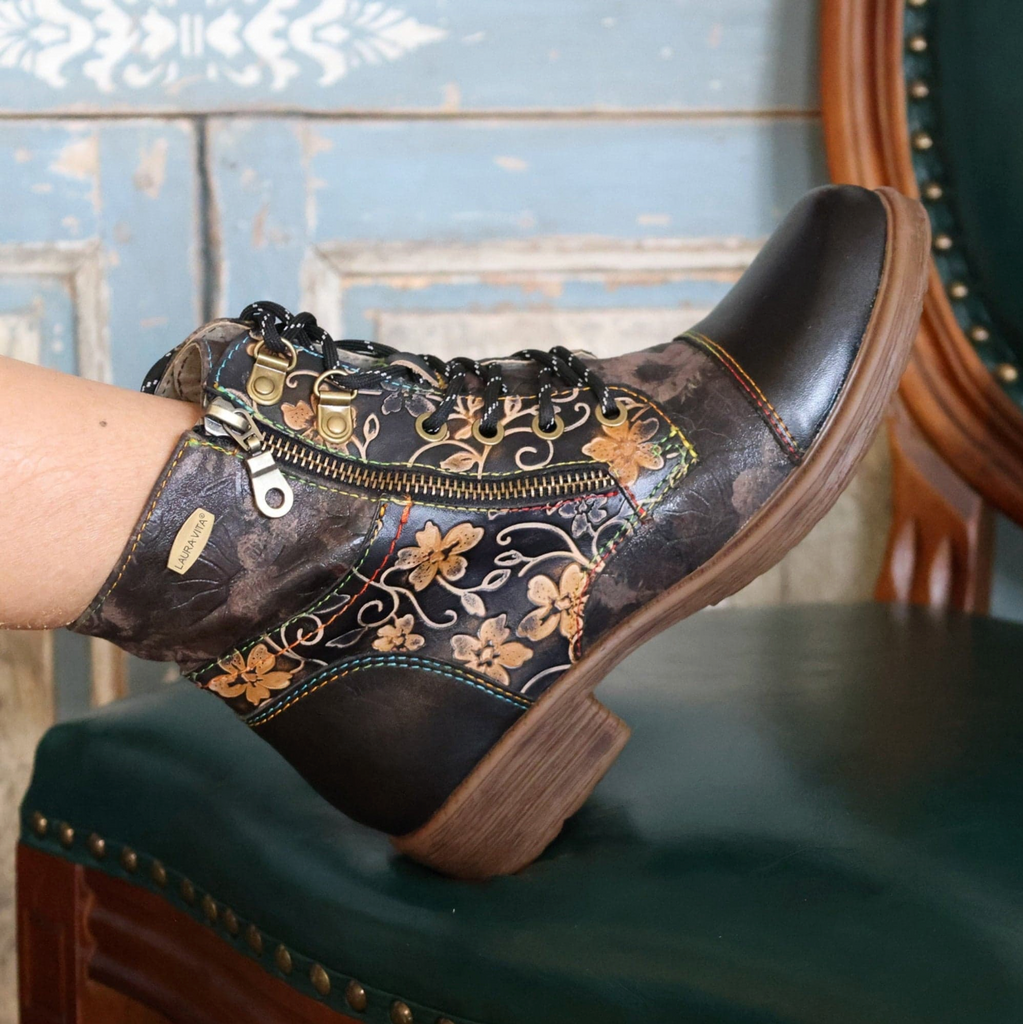 Laura Vita | Anitao 06 Embossed Leather Ankle Boot | Black Multi