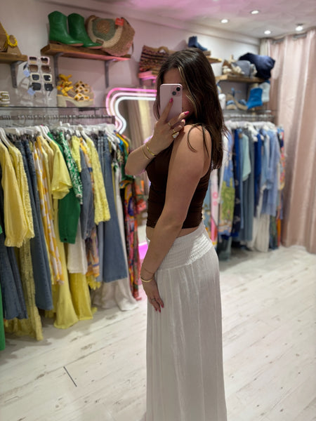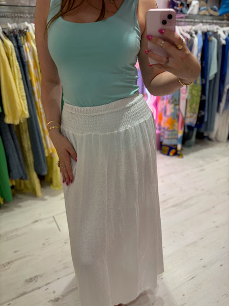 Linen Mix Tea Bag Midi Skirt | White