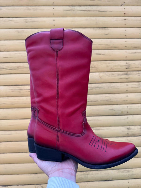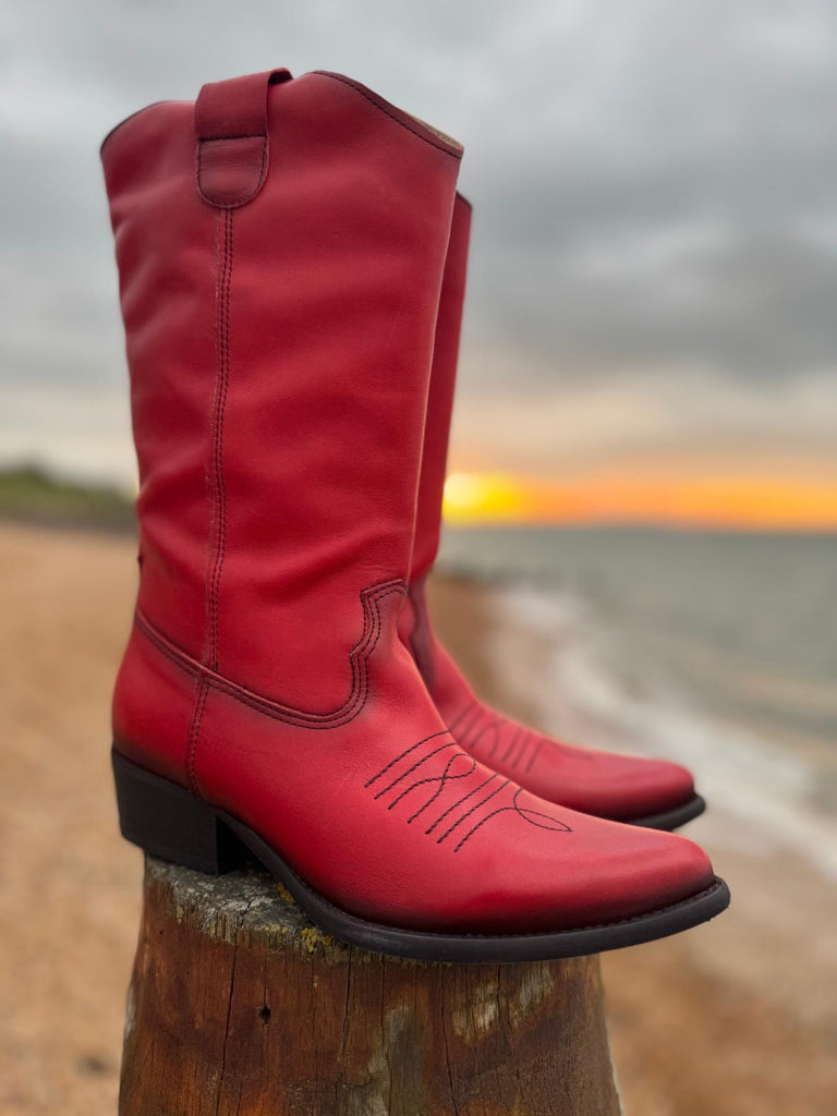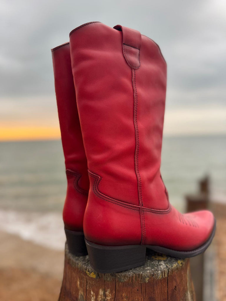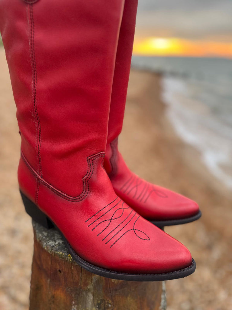 Long Leather Cowboy Boot | Red
