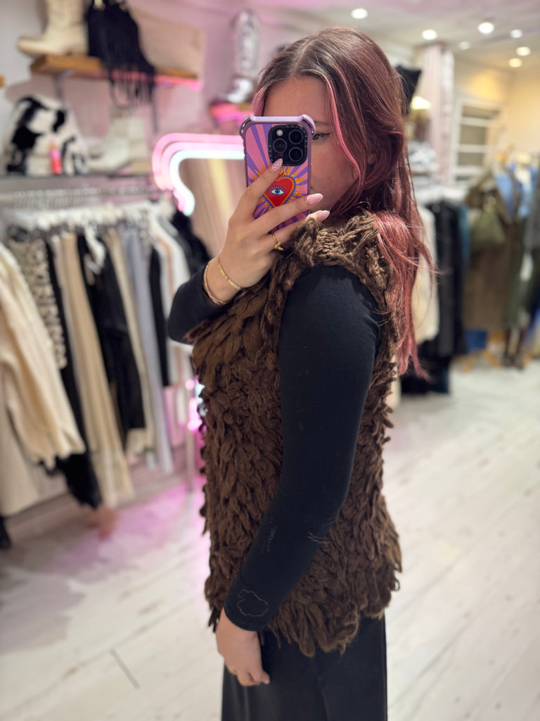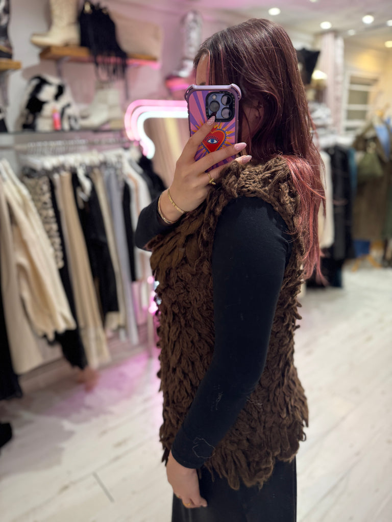 Looped Textured Knit Waistcoat | Chocolate Brown