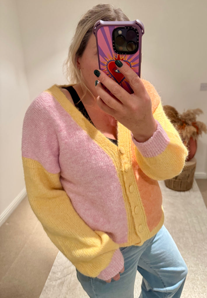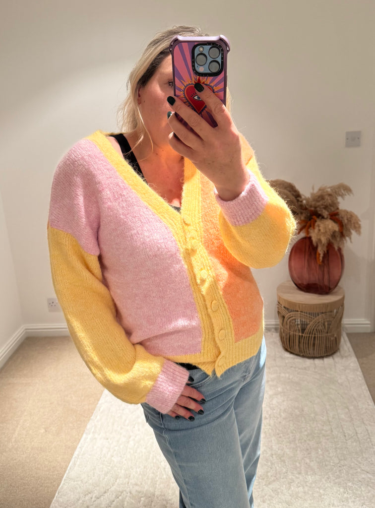 Pastel Colour Block Cardigan | Yellow Multi