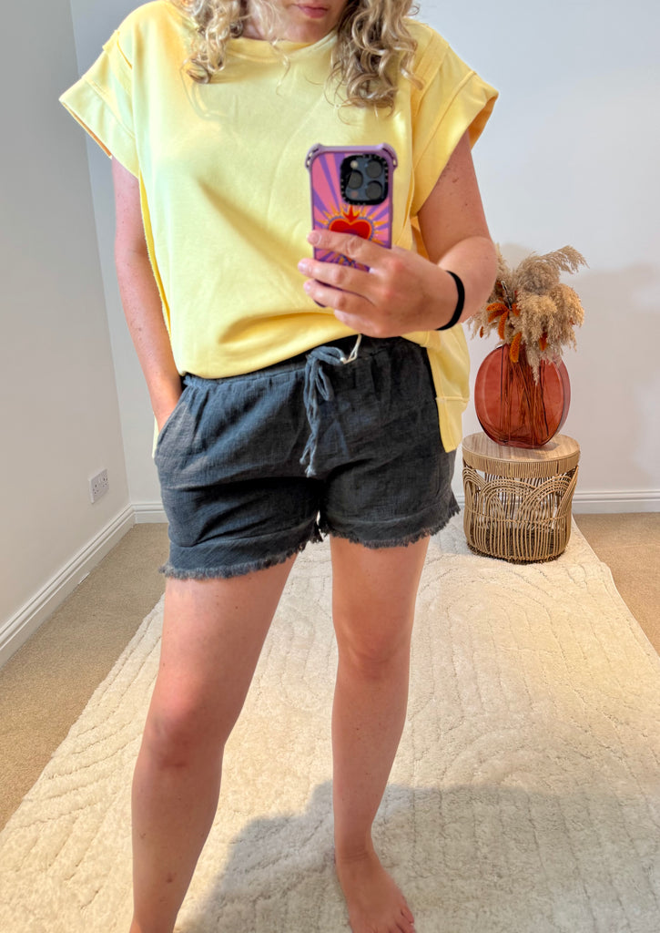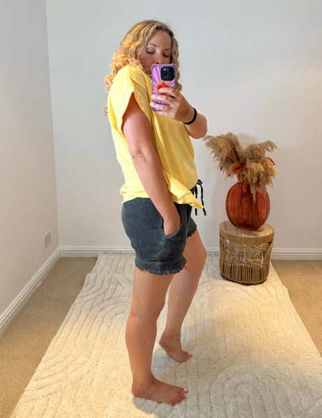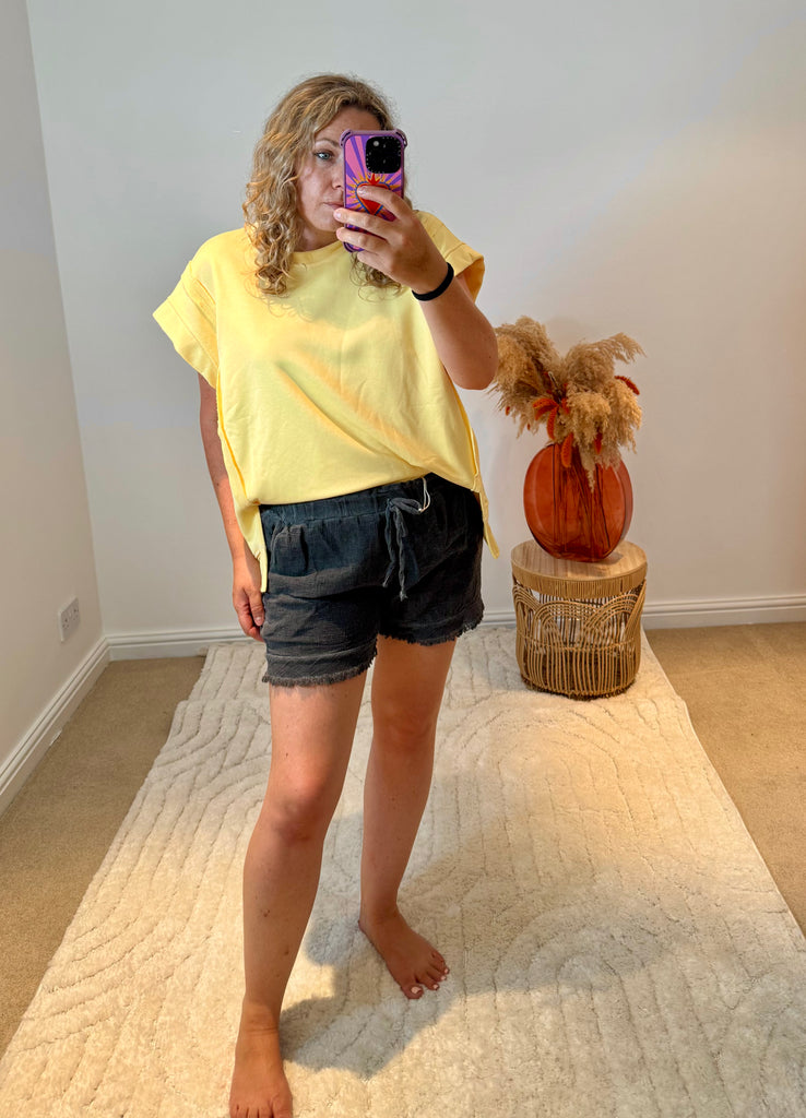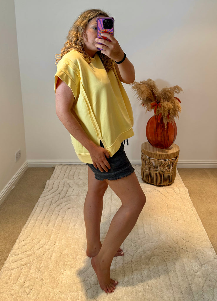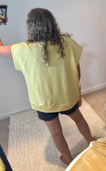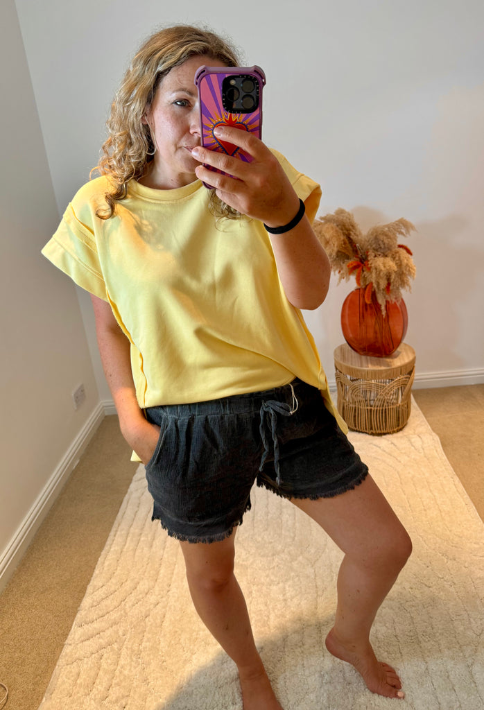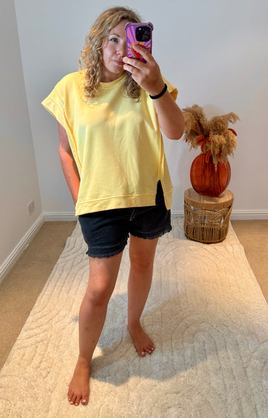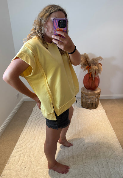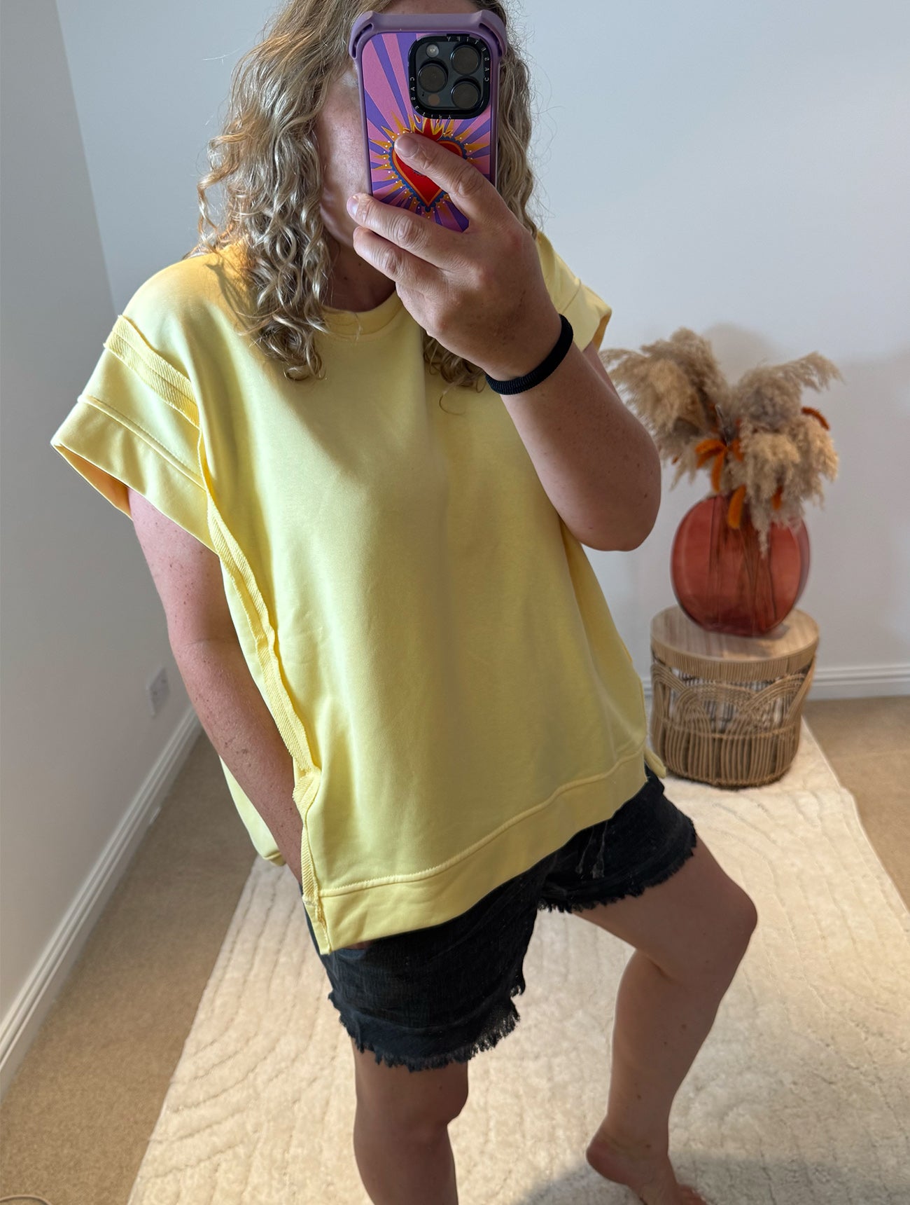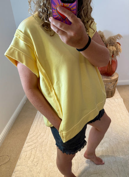 Raw Edge Short Sleeved Sweatshirt | Lemon Yellow