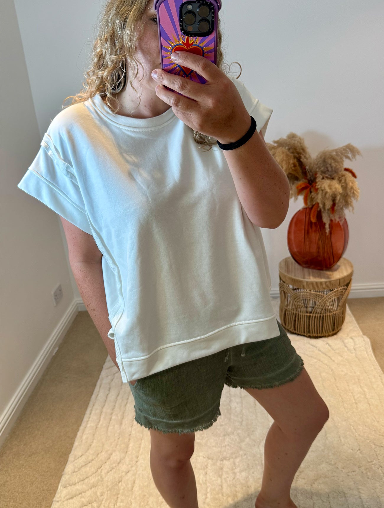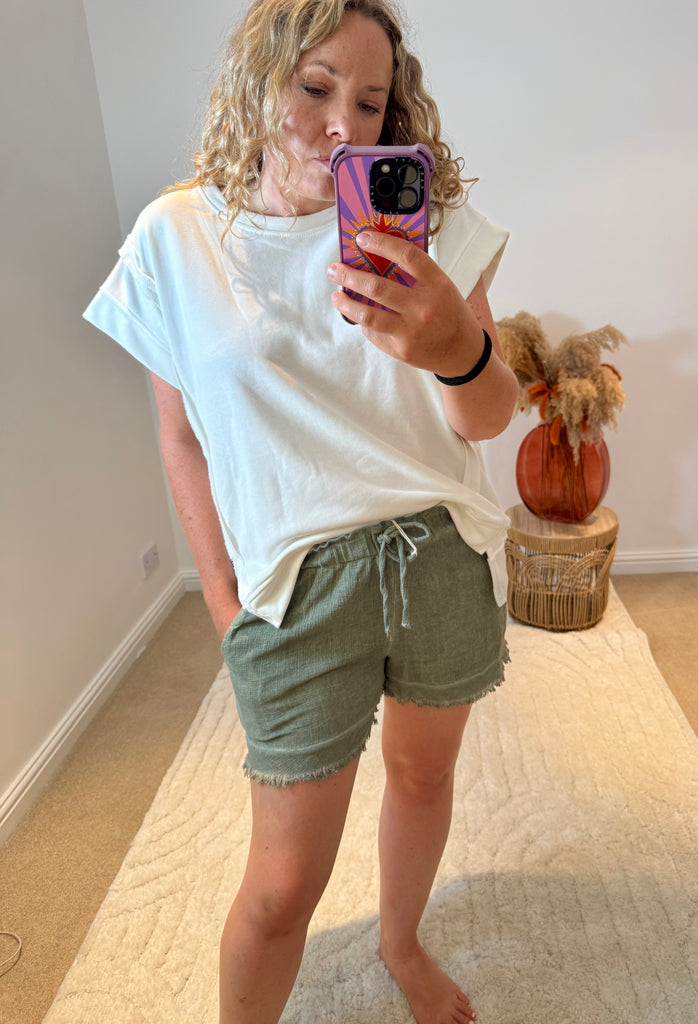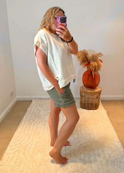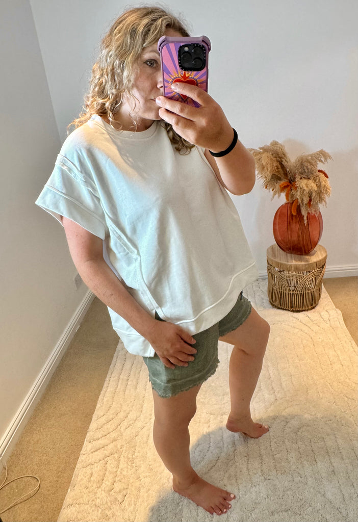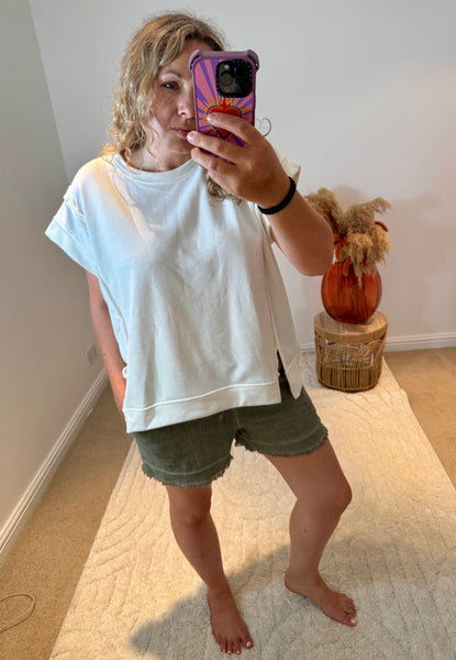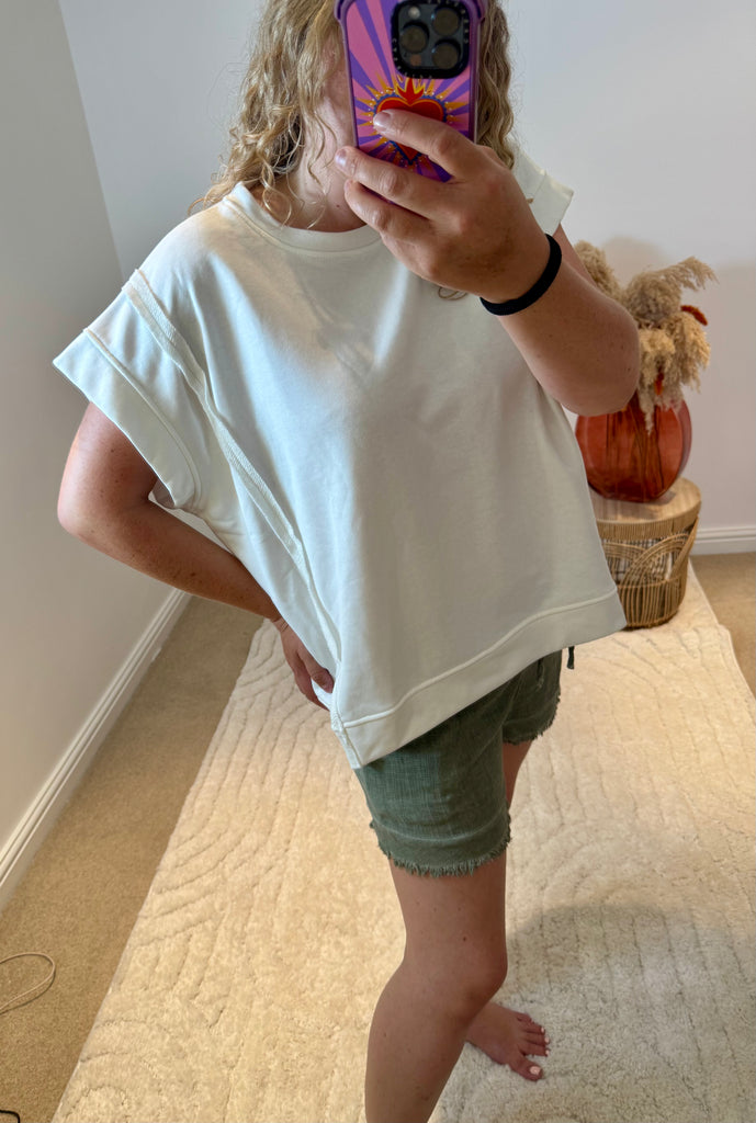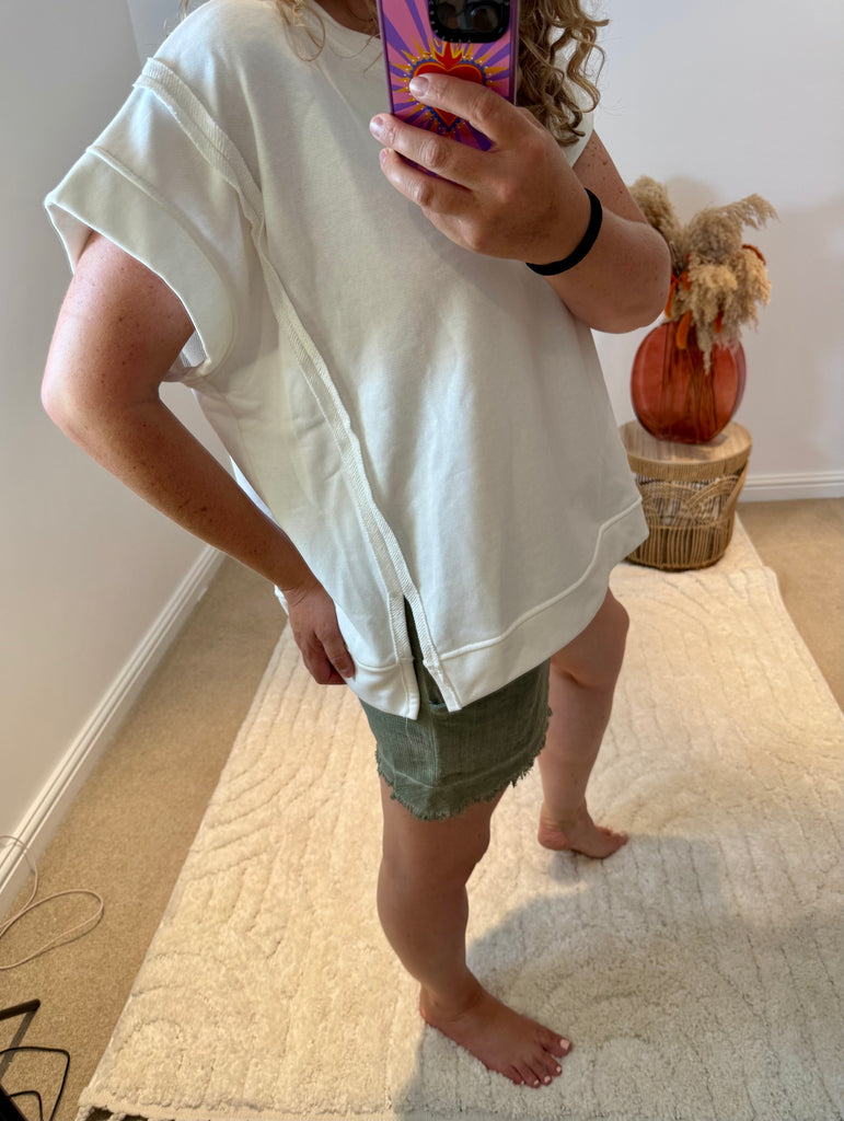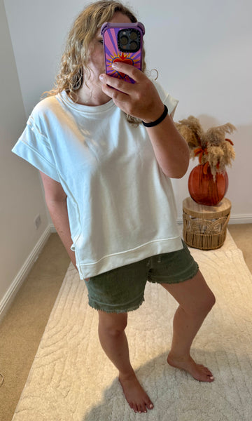 Raw Edge Short Sleeved Sweatshirt | White