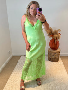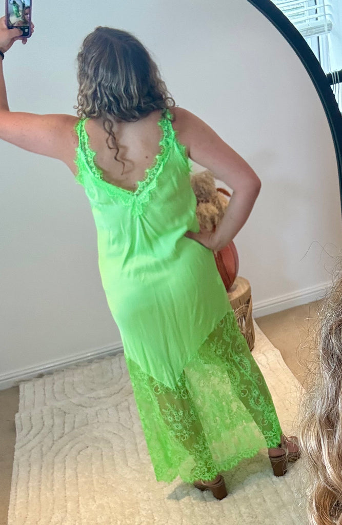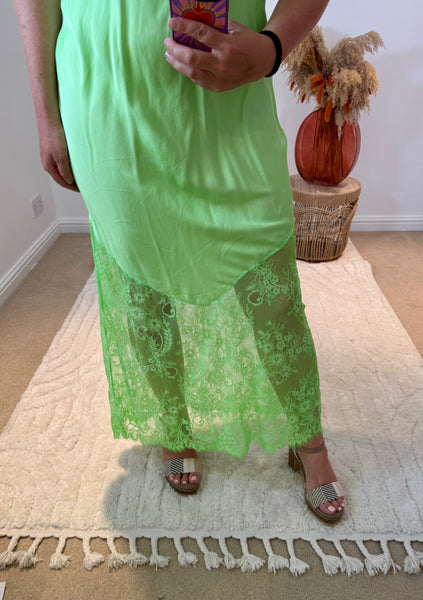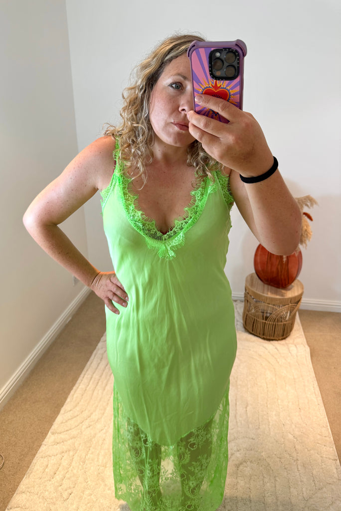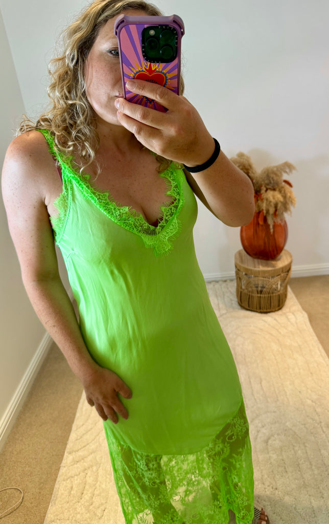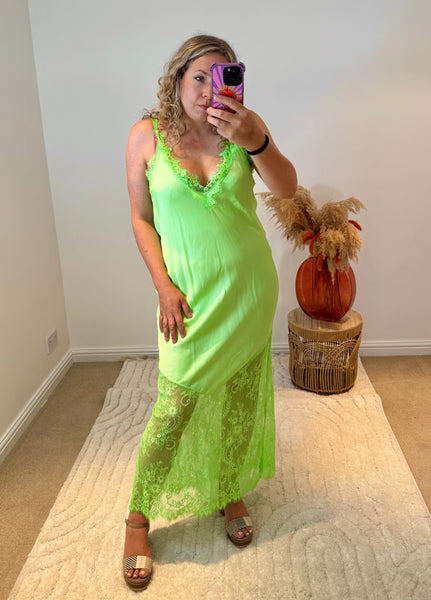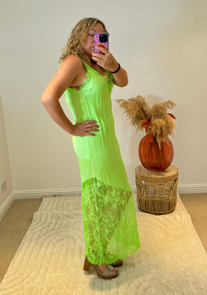 Satin Lace Detail Slip Dress | Neon Green