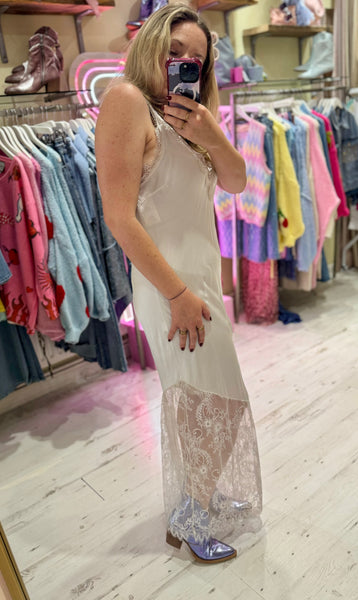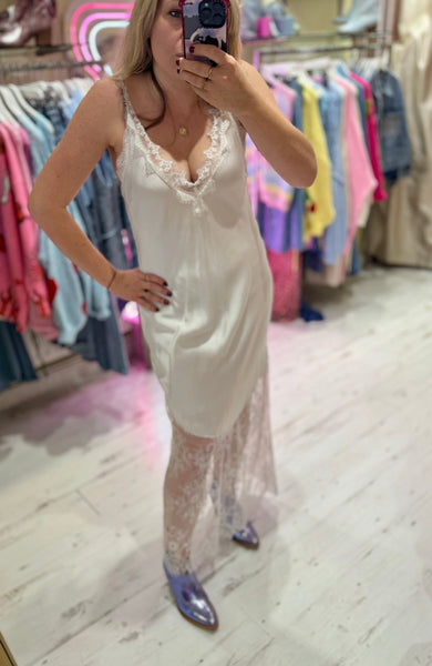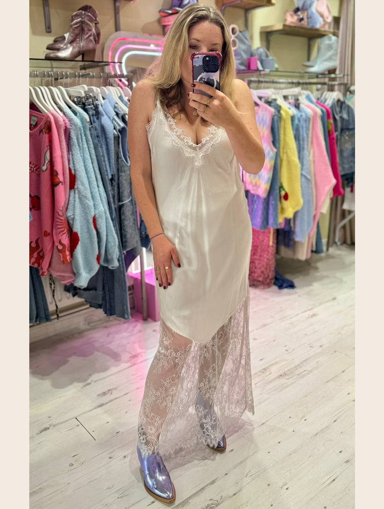Satin Lace Detail Slip Dress | Off-white