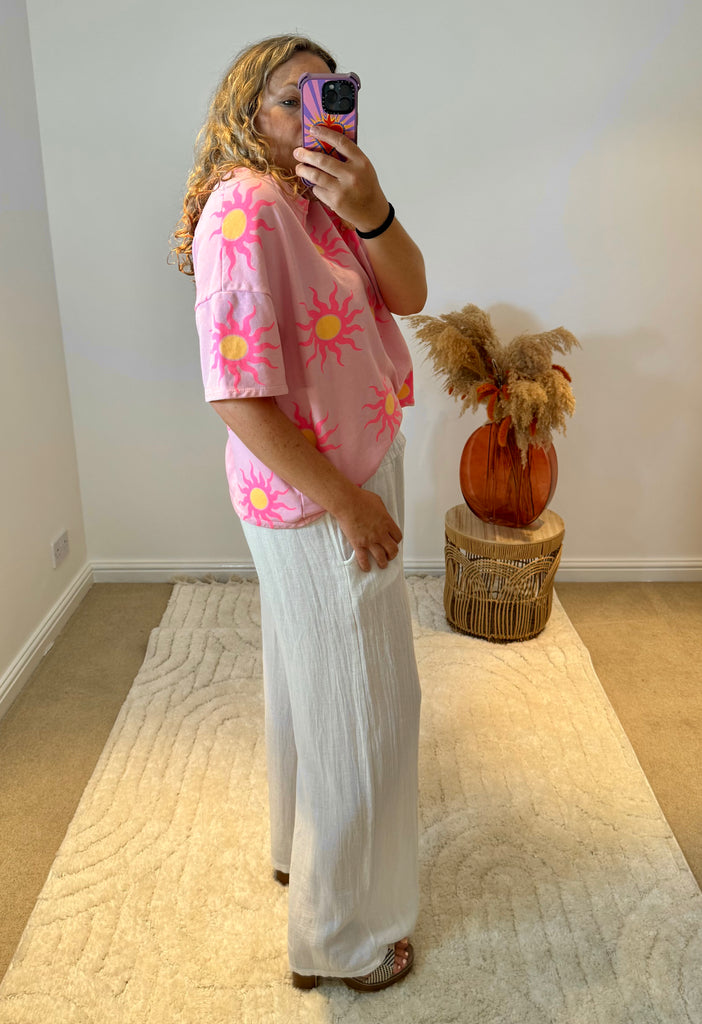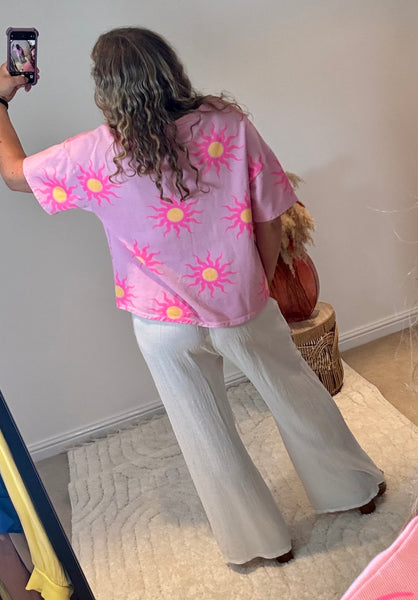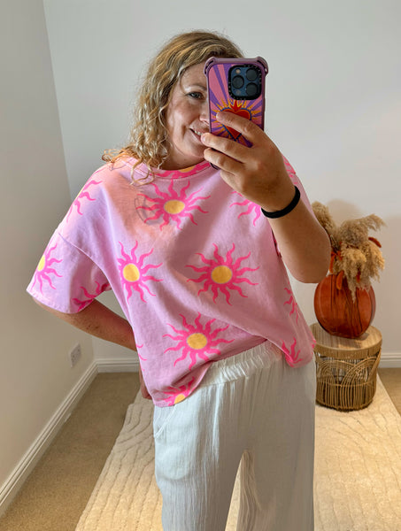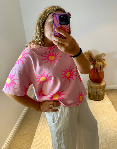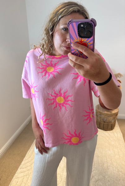 Sun Print Short Sleeved Sweatshirt | Pink/Neon Pink
