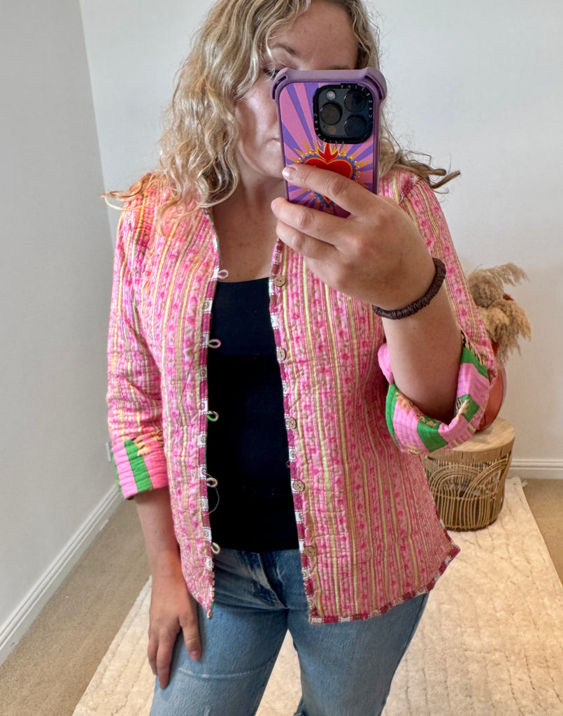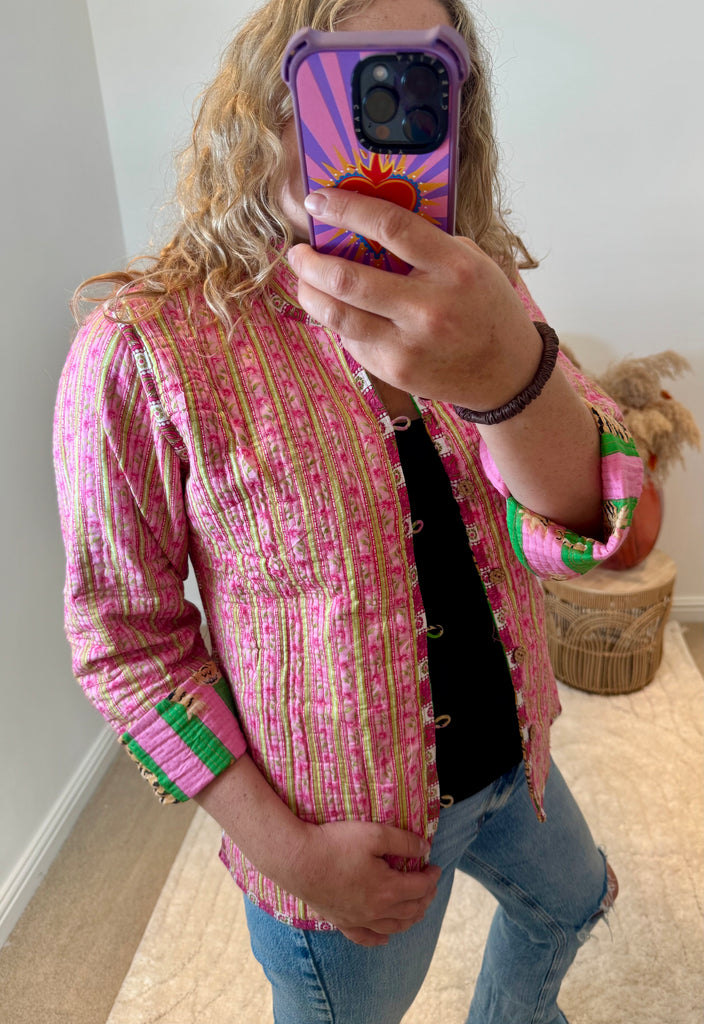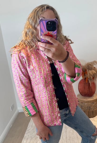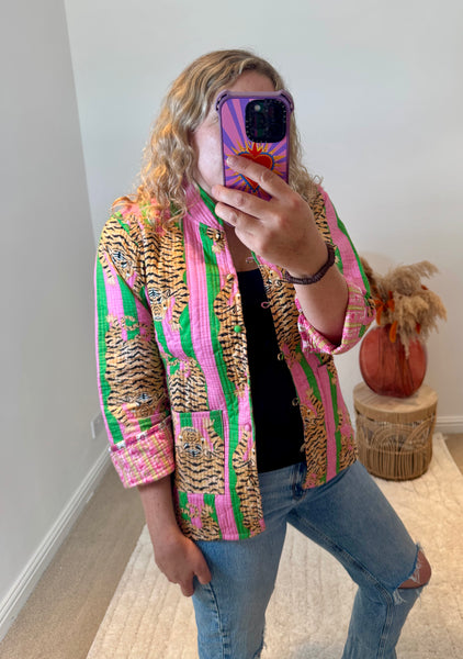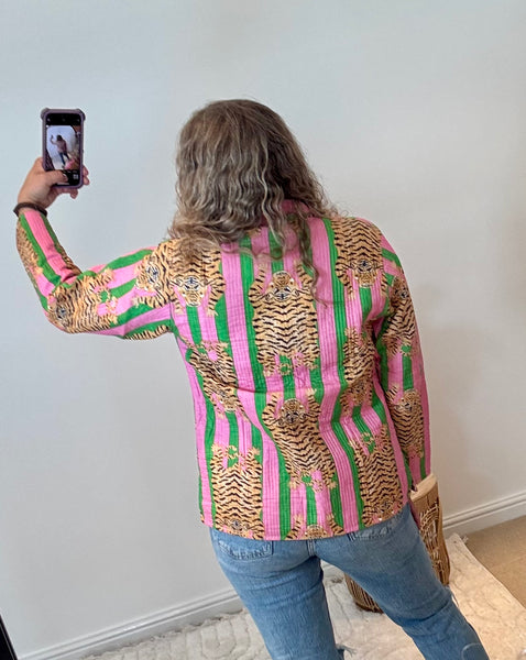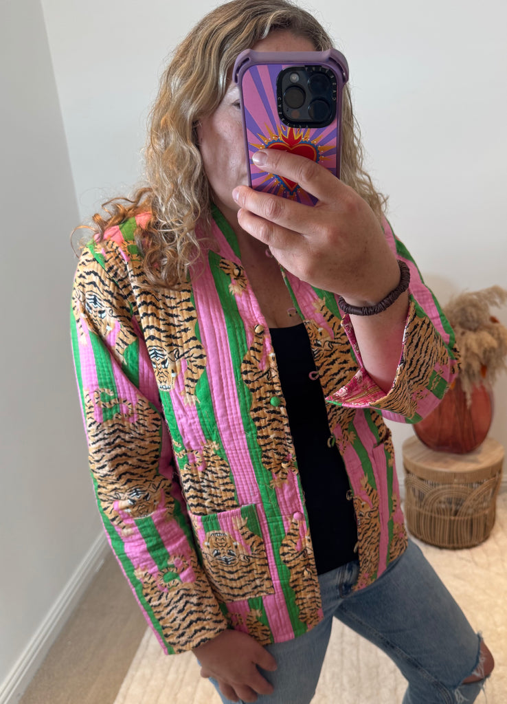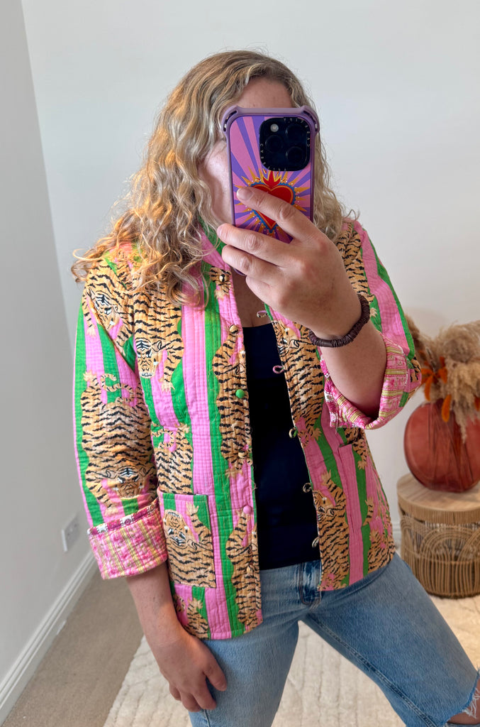 Tiger Reversible Lightweight Quilted Jacket | Pink/Green