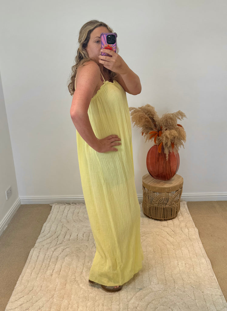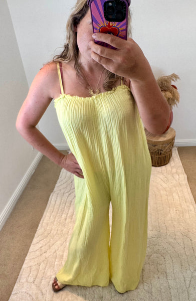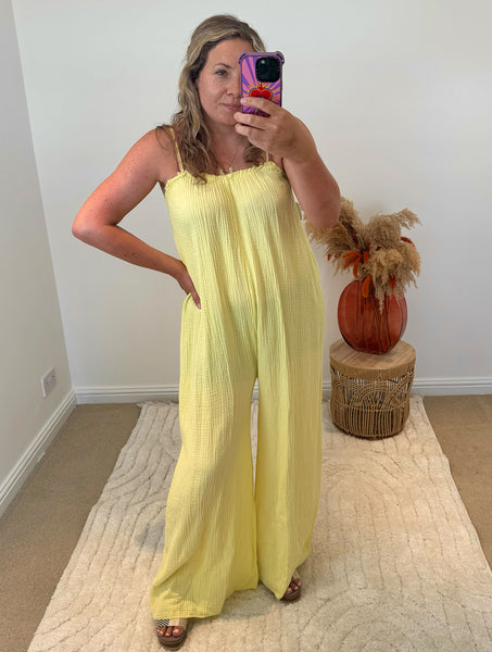 Wide Leg Cheesecloth Jumpsuit | Lemon Yellow